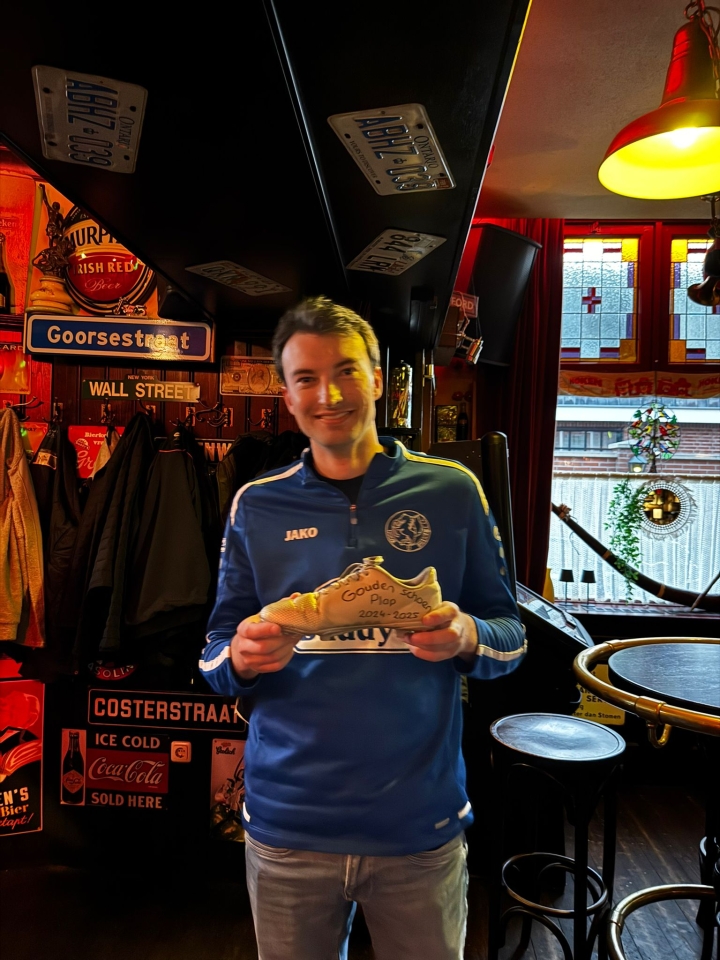 Tijdens de ALV werd ook de PatsBoemtrofee van het afgelopen seizoen uitgereikt. De eer om de prijs uit te reiken was deze keer aan PatsBoem-goeroe Bernd Waanders, die ieder weekend alle gescoorde goals minutieus bijhoudt. Waar Philip Zunnebeld in het seizoen `23/`24 al zeer dicht bij de felbegeerde beker was, heeft hij de prijs nu ook daadwerkelijk gewonnen. Met liefst 40 doelpunten bleef hij de concurrentie een straatlengte voor. Na de uitreiking had hij mooie woorden voor zijn teamgenoten van Twenthe 7, voor wie het de eerste prijs ooit was. Zijn teamgenoten bedankten hem vooraf aan de jaarvergadering bij de Buddy`s en beloonden hem ook nog met de gouden schoen. Van harte gefeliciteerd Philip!